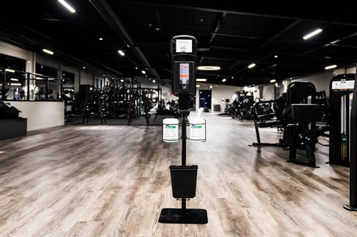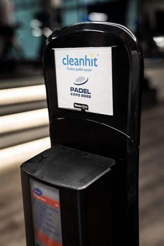 En perfekt lösning för handdesinfektion och ytdesinfektion i entrén till en padelanläggning eller det mindre gymmet.